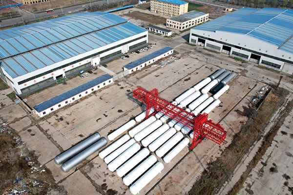 原材料为采用业内龙头公司定扎钢板,确保原材料质量稳定可靠;有效减少了纵、环缝数量和封头拼接焊缝,筒体仅需要切掉毛边,无大块废料,提高了材料利用率并且保证了产品质量。
